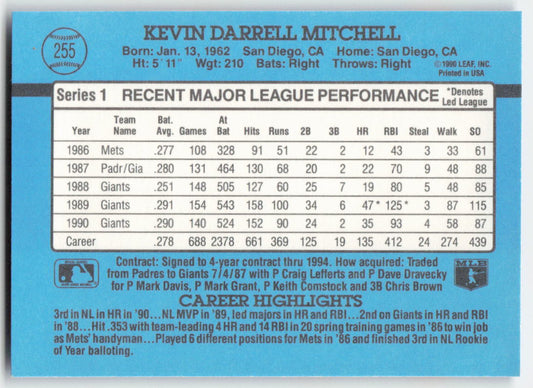 1991 Donruss #255 Kevin Mitchell San Francisco Giants 1609