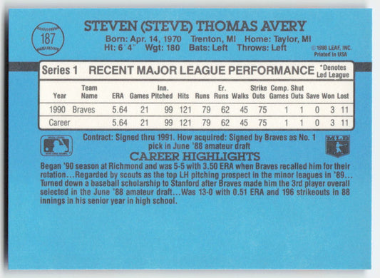 1991 Donruss #187 Steve Avery Atlanta Braves 1610