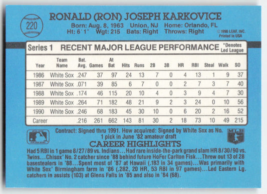 1991 Donruss #220 Ron Karkovice Chicago White Sox 1616