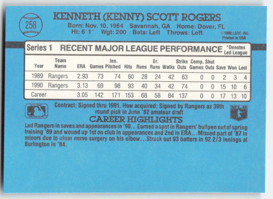 1991 Donruss #258 Kenny Rogers Texas Rangers 1618