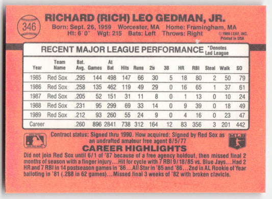 1990 Donruss #346 Rich Gedman Boston Red Sox 1622