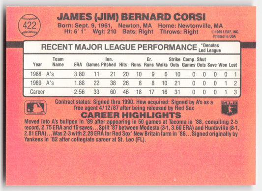 1990 Donruss #422 Jim Corsi Oakland Athletics 1625