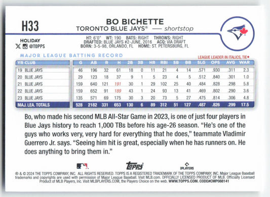 2024 Topps Holiday #H33 Bo Bichette Toronto Blue Jays 1582
