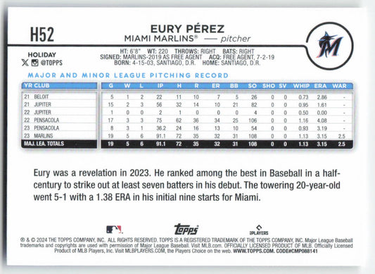 2024 Topps Holiday #H52 Eury Pérez Miami Marlins 1583