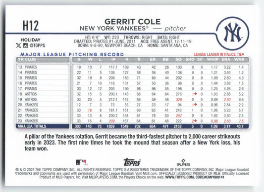 2024 Topps Holiday #H12 Gerrit Cole New York Yankees 1584