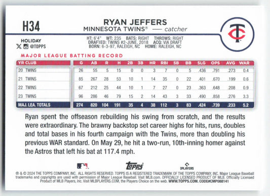 2024 Topps Holiday #H34 Ryan Jeffers Minnesota Twins 1585