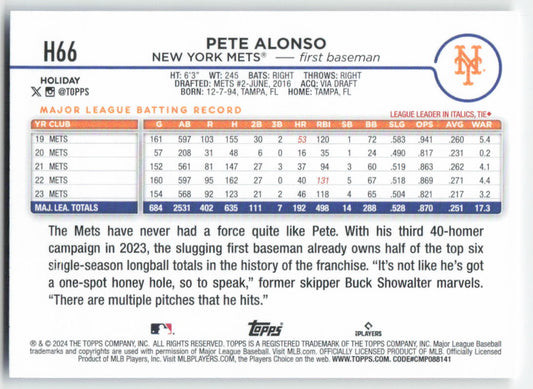 2024 Topps Holiday #H66 Pete Alonso New York Mets 1586
