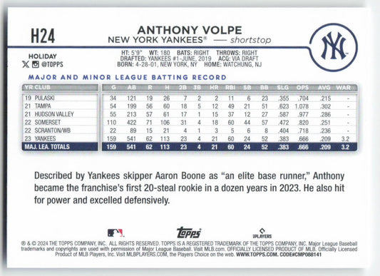 2024 Topps Holiday #H24 Anthony Volpe New York Yankees 1587