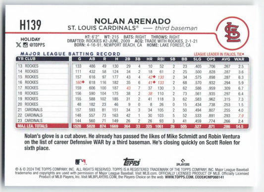 2024 Topps Holiday #H139 Nolan Arenado St. Louis Cardinals 1590