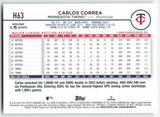 2024 Topps Holiday #H63 Carlos Correa Minnesota Twins 1593