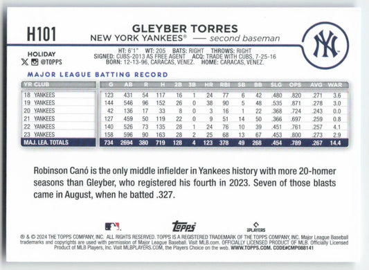 2024 Topps Holiday #H101 Gleyber Torres New York Yankees 1594