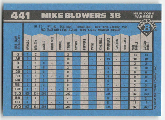 1990 Bowman #441 Mike Blowers New York Yankees Rookie 1600