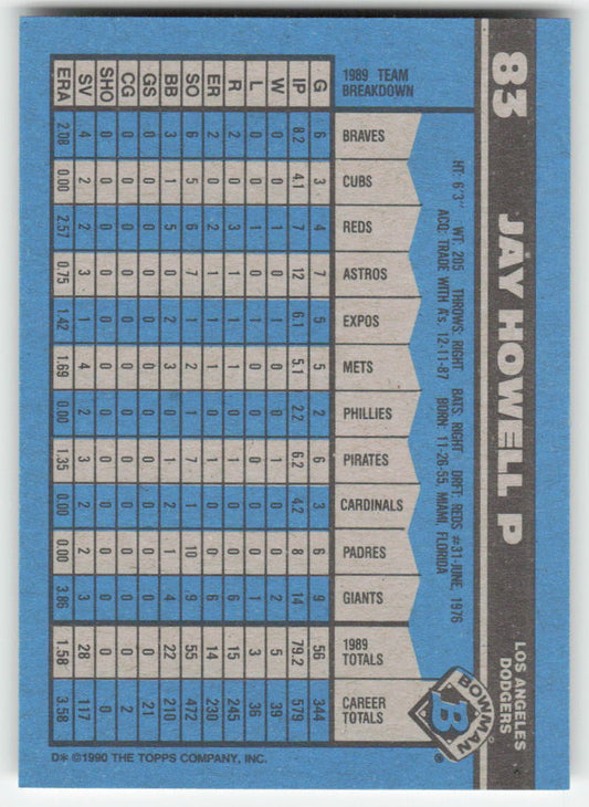 1990 Bowman #83 Jay Howell Los Angeles Dodgers 1601