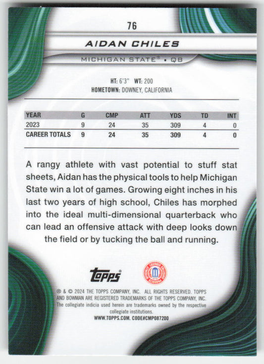 2024 Bowman University Best #76 Aidan Chiles Michigan State Spartans FB1-623