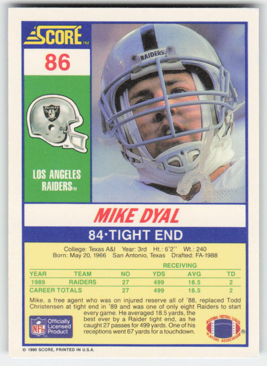 1990 Score #86 Mike Dyal Los Angeles Raiders Rookie FB1-636