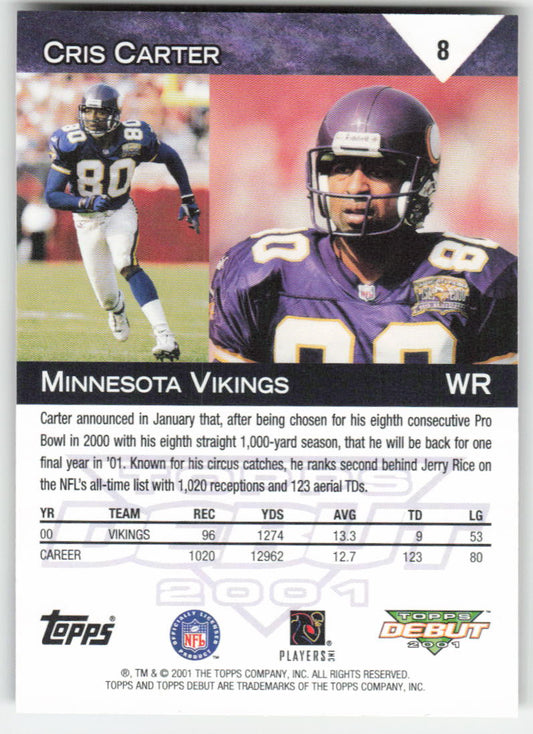 2001 Topps Debut #8 Cris Carter Minnesota Vikings FB1-619