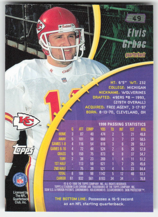 1999 Stadium Club Chrome #49 Elvis Grbac Kansas City Chiefs FB1-613