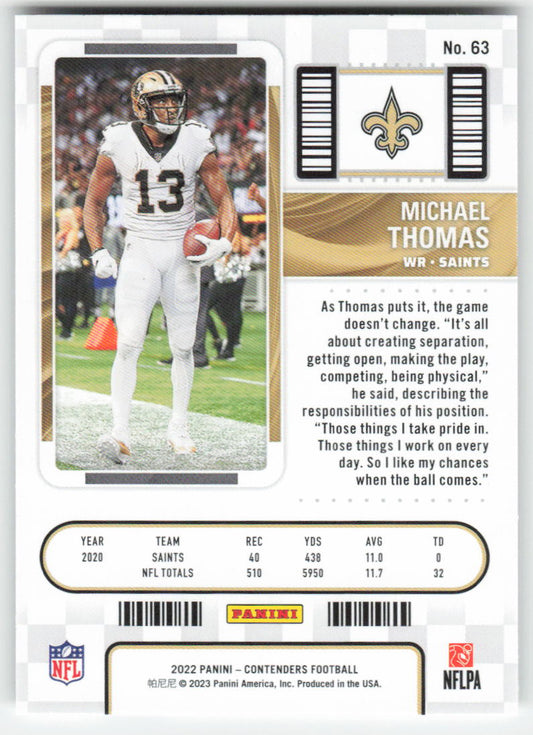 2022 Panini Contenders #63 Michael Thomas New Orleans Saints FB1-606