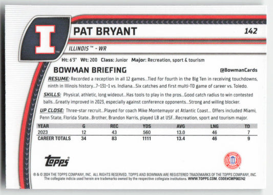 2024 Bowman University Chrome #142 Pat Bryant Illinois Fighting Illini FB1-609