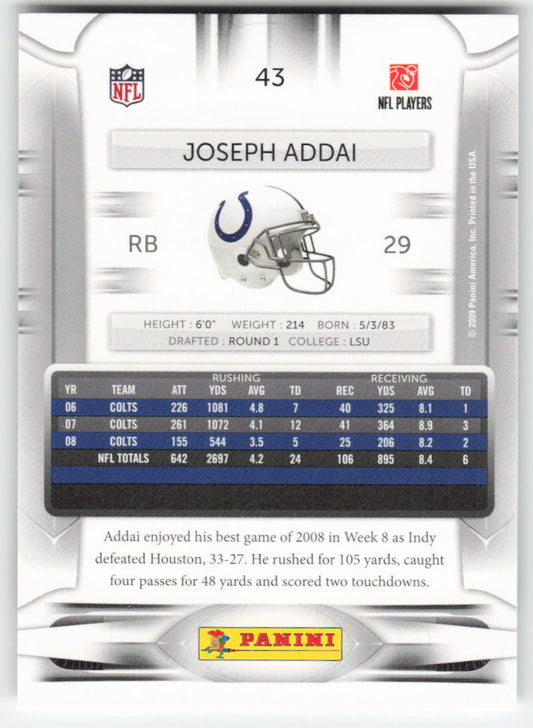 2009 Playoff Prestige #43 Joseph Addai Indianapolis Colts FB1-665