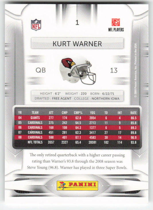 2009 Playoff Prestige #1 Kurt Warner Arizona Cardinals FB1-666