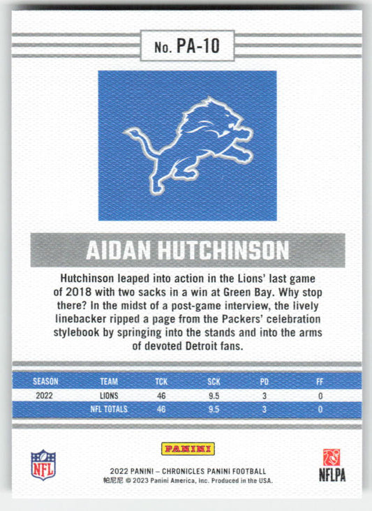 2022 Panini Chronicles #PA-10 Aidan Hutchinson Panini Detroit Lions FB1-674