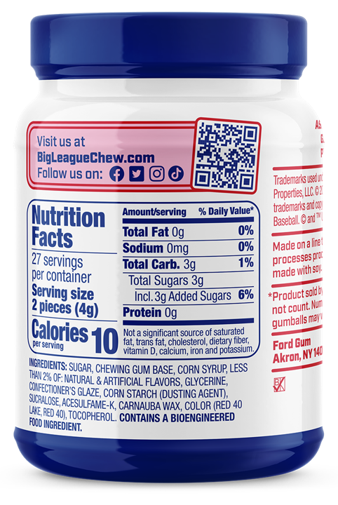 Big League Chew Baseball w/ Gumballs, Stickers & Tattoo - .53oz