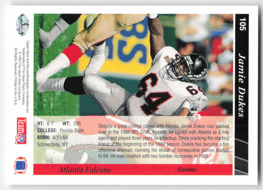 1993 Upper Deck #105 Jamie Dukes Atlanta Falcons FB1-228