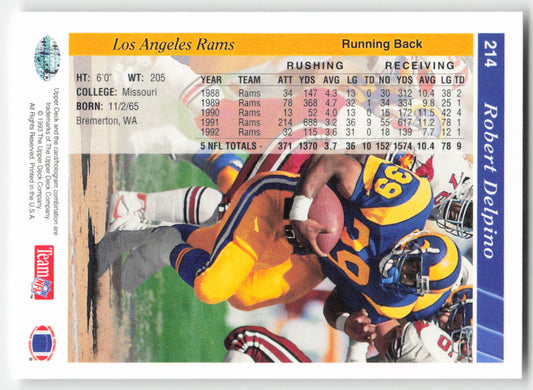 1993 Upper Deck #214 Robert Delpino Denver Broncos FB1-231