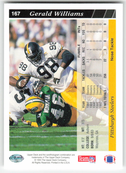 1993 Upper Deck #167 Gerald Williams Pittsburgh Steelers FB1-233