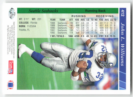 1993 Upper Deck #412 John L. Williams Seattle Seahawks FB1-234