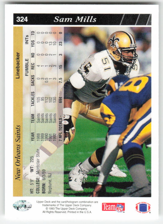 1993 Upper Deck #324 Sam Mills New Orleans Saints FB1-235