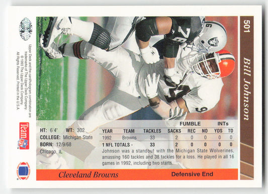 1993 Upper Deck #501 Bill Johnson Cleveland Browns FB1-237