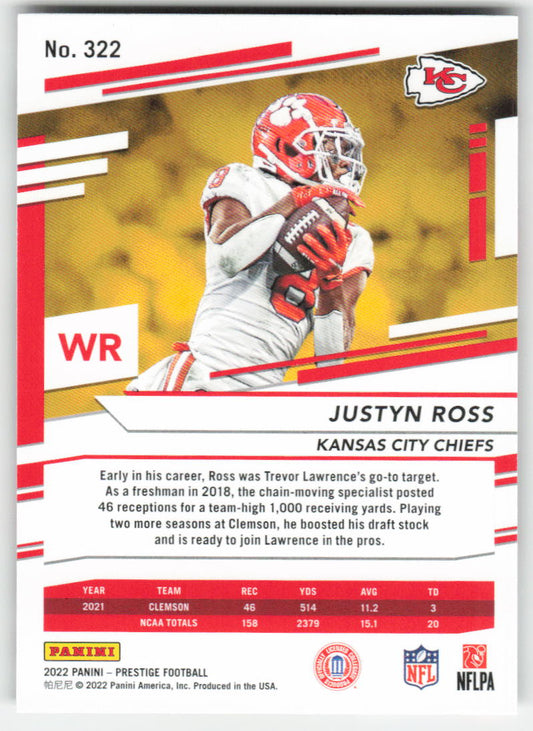 2022 Panini Prestige #322 Justyn Ross Kansas City Chiefs Rookie FB1-547