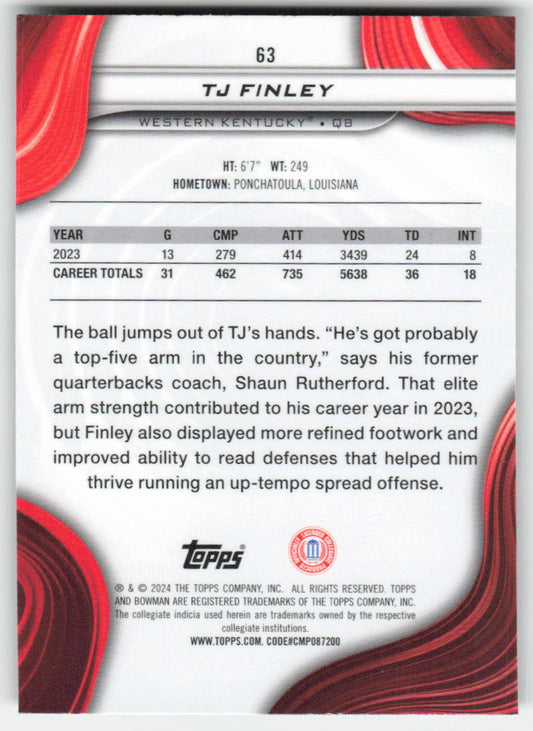 2024 Bowman University Best #63 TJ Finley Western Kentucky Hilltoppers FB1-551