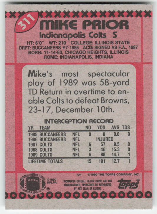 1990 Topps #311b Mike Prior Indianapolis Colts FB1-553