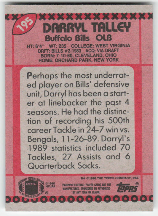 1990 Topps #195b Darryl Talley Buffalo Bills FB1-554