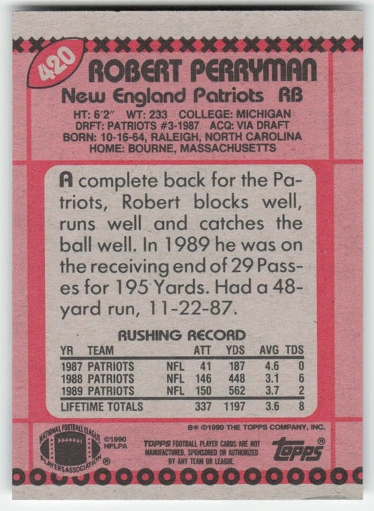 1990 Topps #420 Robert Perryman New England Patriots FB1-556