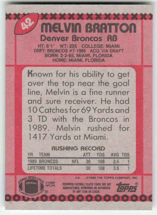 1990 Topps #42b Melvin Bratton Denver Broncos Rookie FB1-562