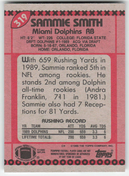 1990 Topps #319b Sammie Smith Miami Dolphins FB1-565