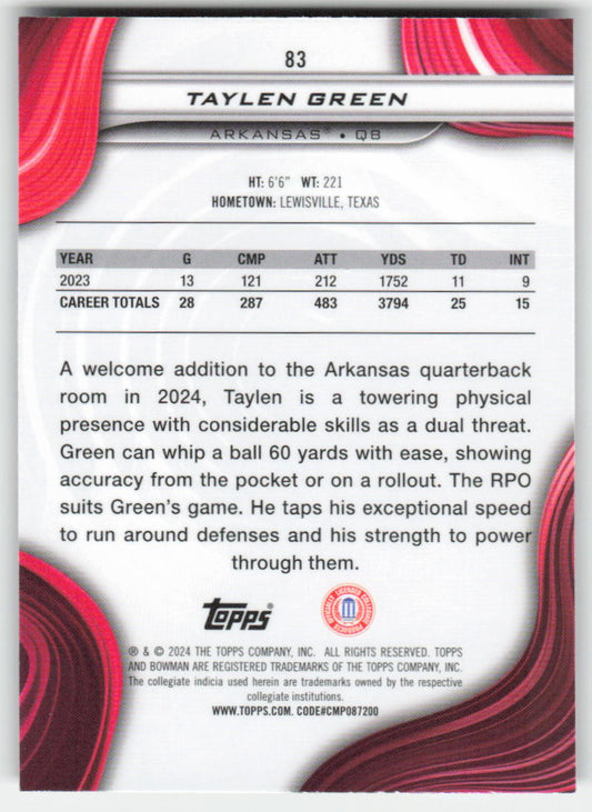 2024 Bowman University Best #83 Taylen Green Arkansas Razorbacks FB1-342