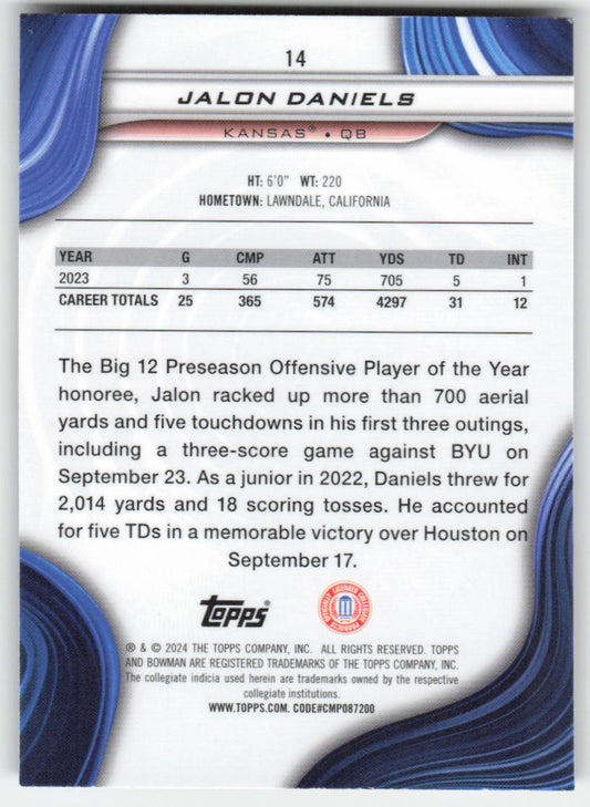 2024 Bowman University Best #14 Jalon Daniels Kansas Jayhawks FB1-347