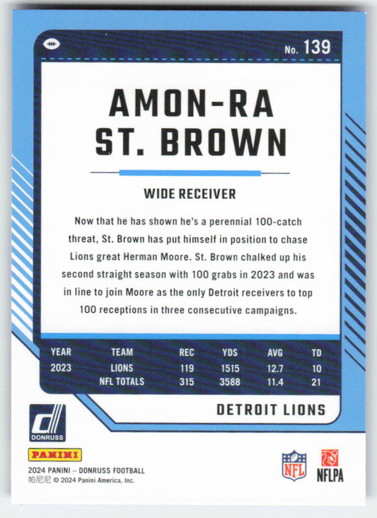 2024 Donruss #139 Amon-Ra St. Brown Press Proof Blue Detroit Lions FB1-290