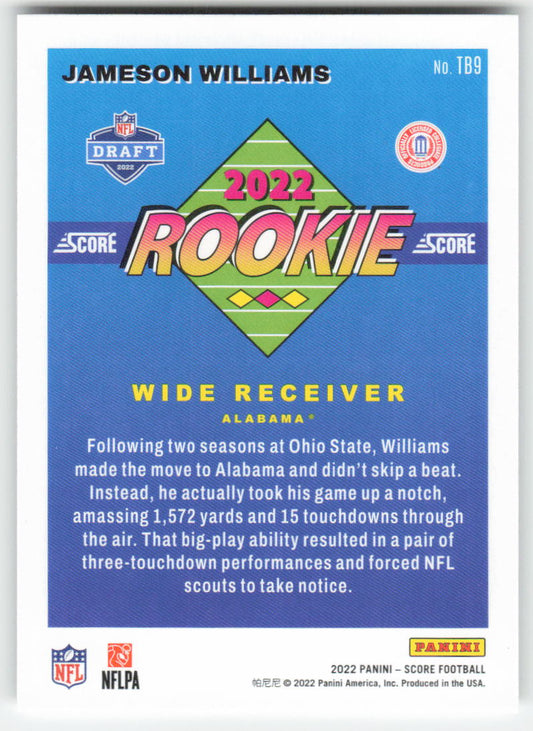 2022 Score #TB9 Jameson Williams 1992 Throwback Rookie Alabama FB1-259