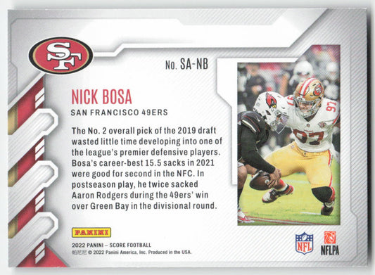 2022 Score #SA-NB Nick Bosa Sack Attack San Francisco 49ers FB1-255