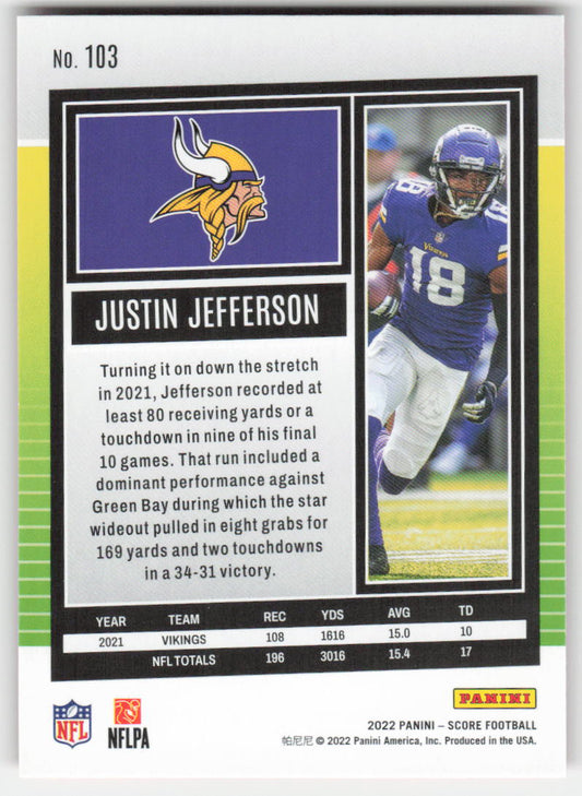 2022 Score #103 Justin Jefferson Red Minnesota Vikings FB1-261
