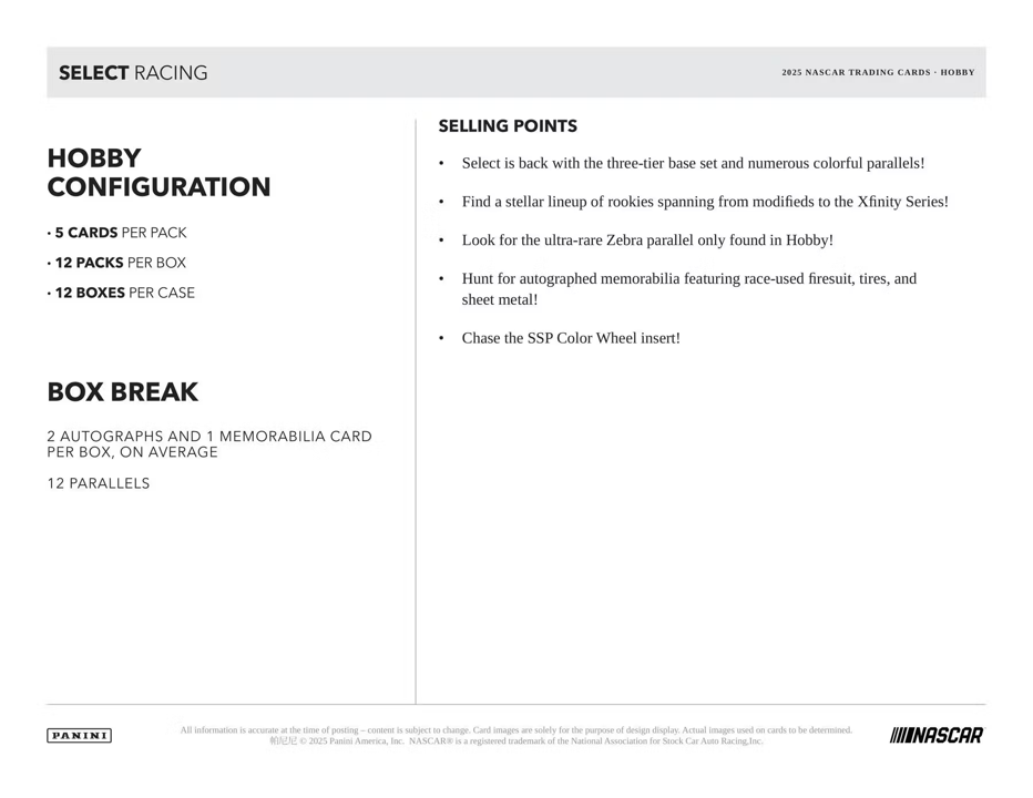 2025 Panini Select Racing Hobby Pack (5 Cards)