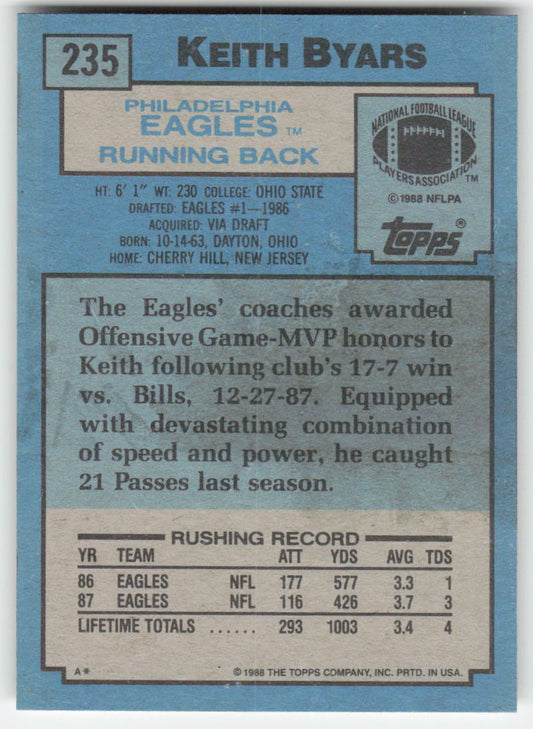 1988 Topps #235 Keith Byars Philadelphia Eagles FB1-93