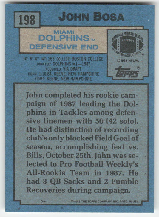 1988 Topps #198 John Bosa Miami Dolphins Rookie FB1-99