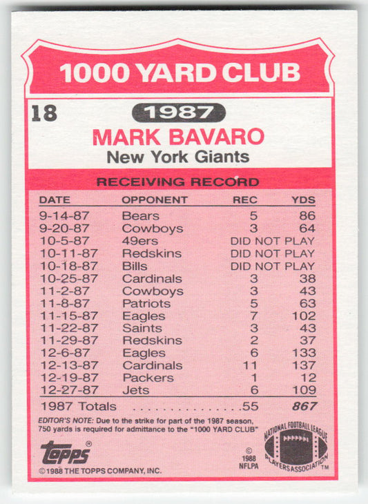 1988 Topps #18 Mark Bavaro 1000 Yard Club New York Giants FB1-672